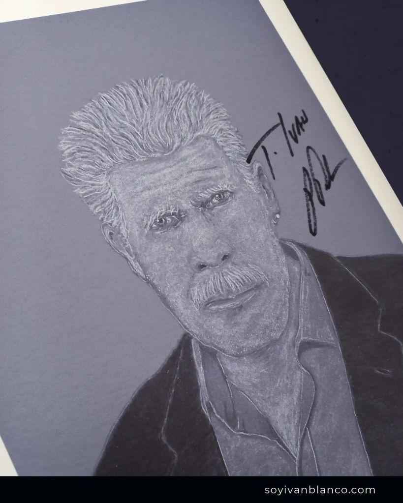 El 18 de marzo del 2023 conocí a Ron Perlman, el mismísimo Hellboy en persona. Me firmó una impresión de uno de mis dibujos donde lo retrato y le regalé una copia. Simplemente una grata experiencia.